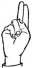 На ћирилици написано ДОБРИЈА КЛИНЦОВ састоји се из 14 слова [?]. Исписано ћириличном једноручном азбуком за глувонеме: